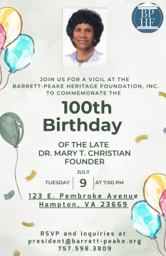 The Barrett-Peake Heritage Foundation envisions preserving historic sites and venues in the city of Hampton, by upgrading and securing signage for historic cemeteries and develop new educational and cultural initiatives at the former Virginia School for Deaf, Blind and Multi-Disabled at Hampton.