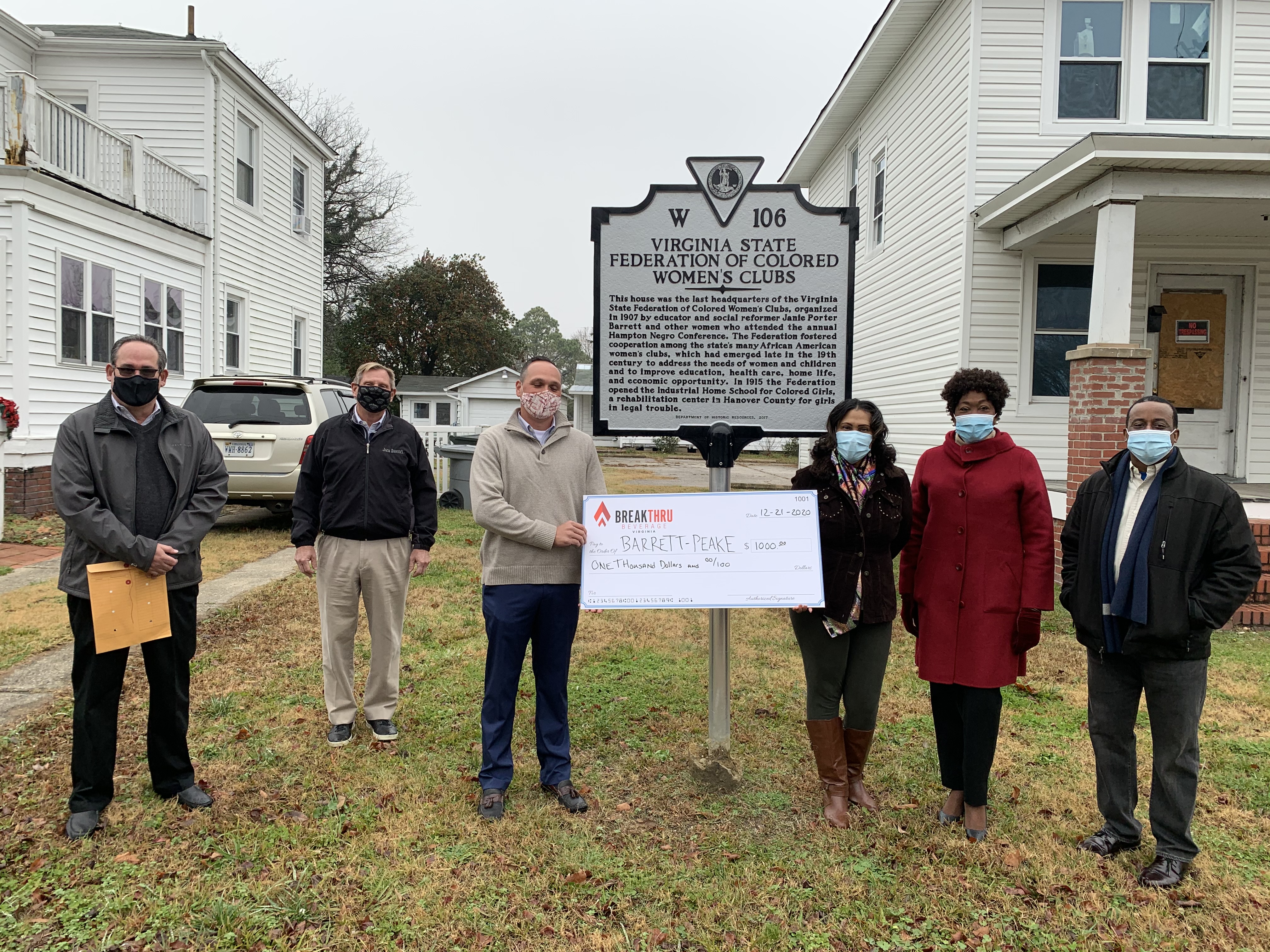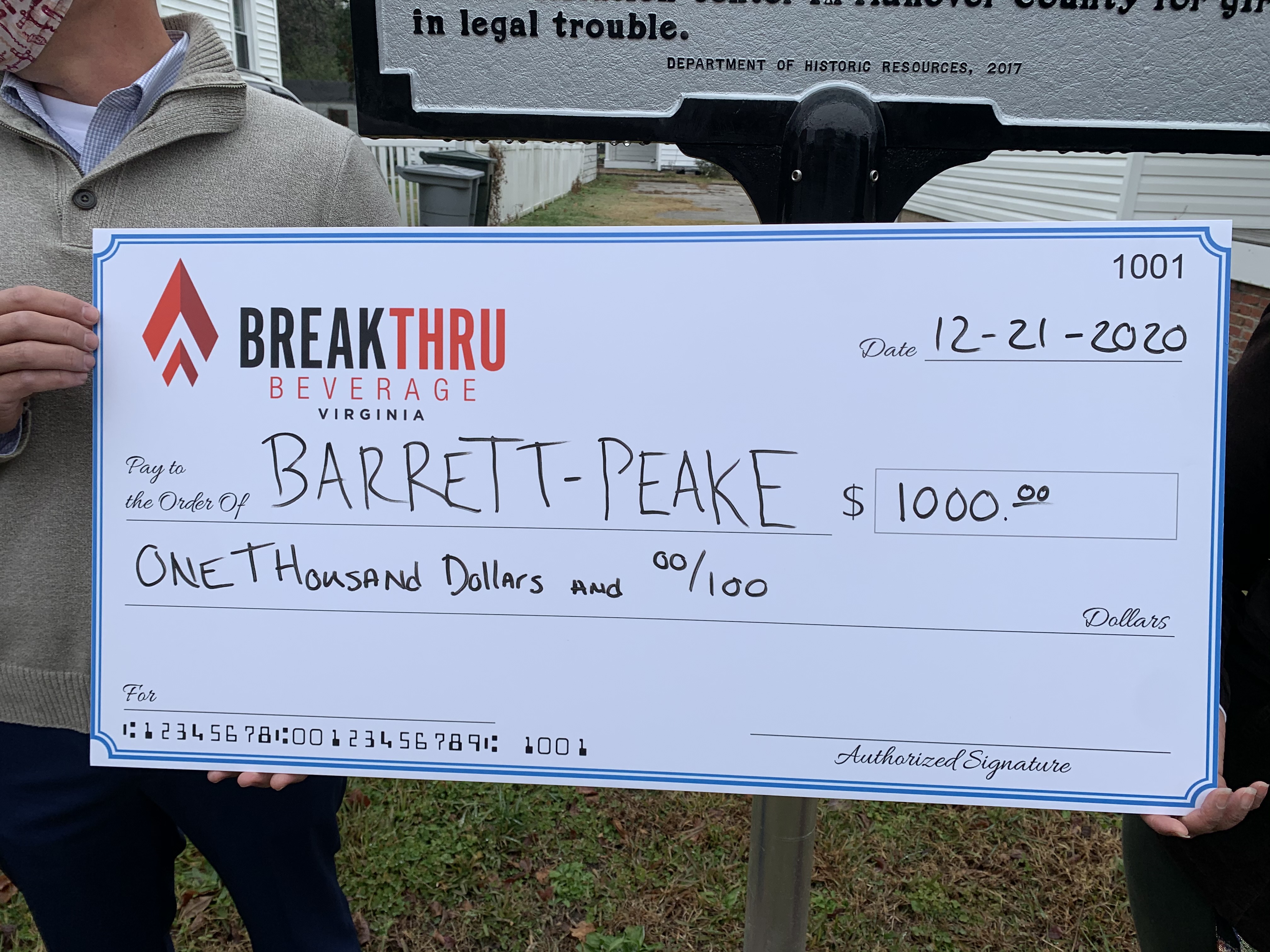 The Peninsula Community Foundation of Virginia Presents Grant to the Barrett-Peake Heritage Foundation