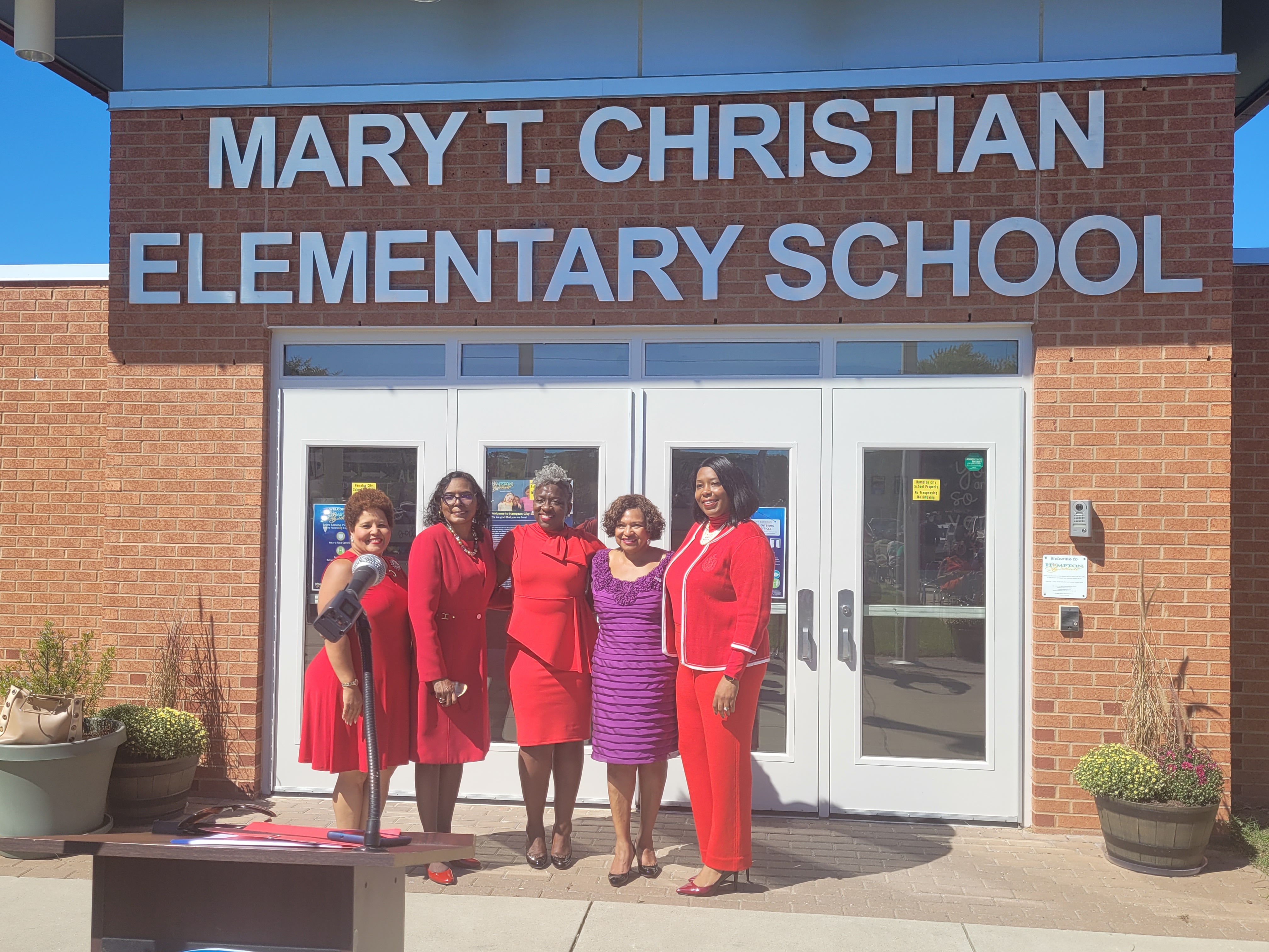 Members of Delta Sigma Theta Sorority, Incorporated; Ms. Hope Harper, State Delegate Jeion Ward, Principal Shelly Lawrence, Dr. Benita Toler (Dr. Christian's daughter and Board Member), Mrs. Keisha Samuels